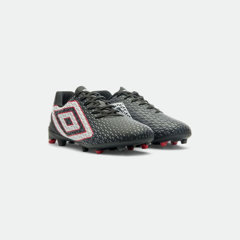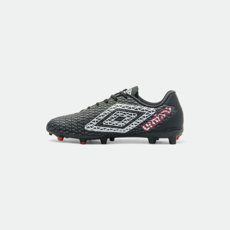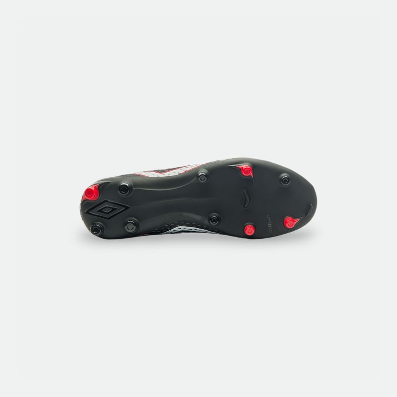 Ideal para jugadores principiantes, este modelo cuenta con una textura en relieve que ayuda en el control y dominio de la pelota en el campo. El empeine asimétrico está fabricado en material laminado con alta frecuencia y gráficos serigrafiados en tres colores. Tiene un mesh trasero para mayor comodidad, y un gran diamante Umbro Outline en el lateral con la firma del modelo. La plantilla interna de EVA moldeada proporciona un ajuste suave. La suela esta fabricada en TPU con tapones bicolores posicionados estratégicamente para ofrecer estabilidad y agarre durante el juego. Este modelo de botín cuenta con suela pegada.