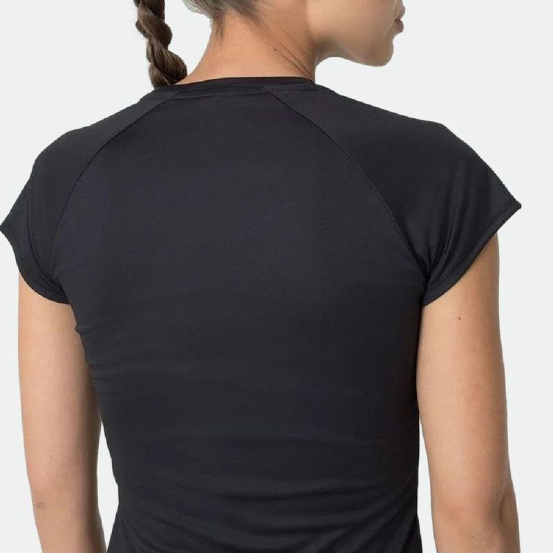 Remera de mujer confeccionada en poliéster reciclado con elastano. Diseño entallado con manga corta raglán y cuello redondo. Producto ecológico diseñado para causar un menor impacto en el medio ambiente. Su tejido contiene las tecnologías UV PROTECTION, que ofrece protección solar SPF 50+ frente a los rayos UVA y UVB, y FLOW, que proporciona un secado rápido, manteniendo el cuerpo a la temperatura ideal para practicar deporte. Parche F-Box aplicado en la parte delantera superior izquierda.