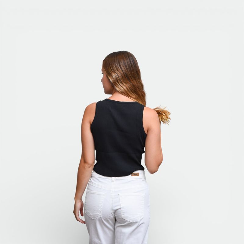 Espalda: el diseño es de estilo competitivo (racerback), lo que permite una mayor libertad de movimiento en los hombros