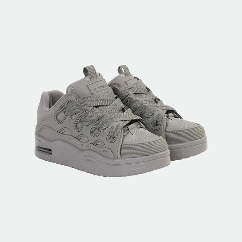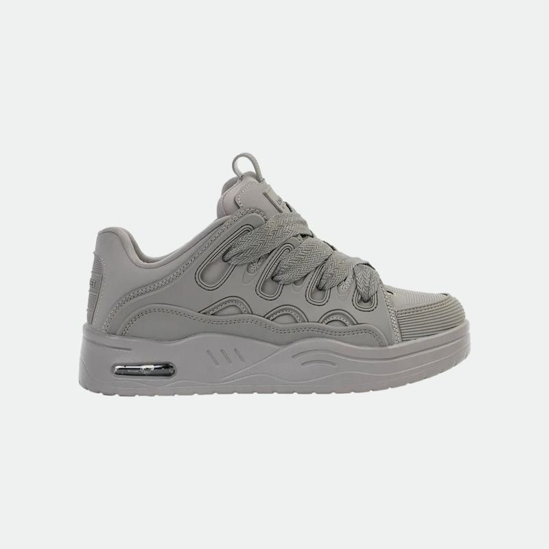Zapatilla urbana con un diseño moderno y audaz, proyectando una actitud distintiva. Fabricada con material sintético de alta calidad, ofrece durabilidad. Su interior de tela brinda comodidad, mientras que la base de goma proporciona una pisada suave y estable. Perfecta para quienes buscan un estilo único y confort en cada paso.