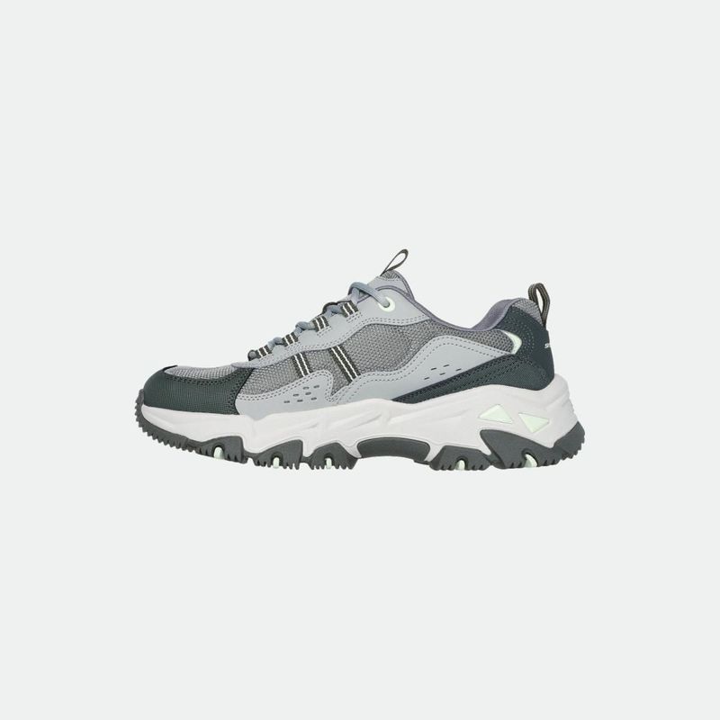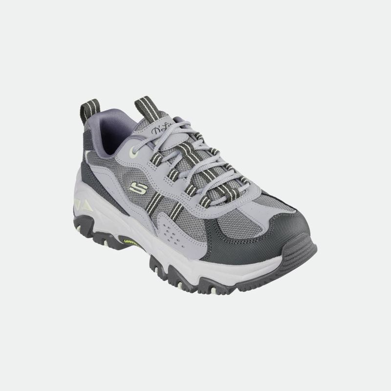 Da lo mejor de ti con un estilo clásico actualizado para los senderos con Skechers D Lites® Hiker. Este calzado informal con cordones para senderos al aire libre presenta una parte superior de malla con capas de cuero y detalles sintéticos termofusibles, una plantilla Skechers Air-Cooled Memory Foam® y una suela exterior con tracción duradera de caucho Goodyear®.